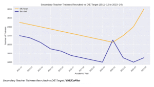 Recruitment figures reveal the severity of the staffing crisis, with the Department for Education achieving merely 62 per cent of its secondary trainee targets during the previous year.